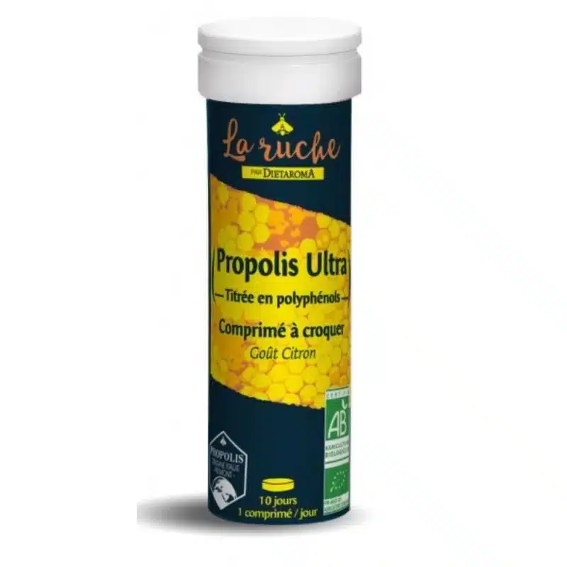 La propolis Diétaroma à croquer est un complément alimentaire bio innovant, issu d’une méthode de purification unique (M.E.D. – Multi Dynamic Extraction) qui garantit une propolis standardisée, concentrée et purifiée sans résine inactive ni alcool.